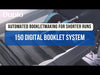 With the entry-level 150 Digital Booklet System, the DBM-150S/T Bookletmaker and Trimmer integrate the stapler, folder, and face trimmer into one. The DSF-2200 Sheet Feeder, with front/side air separation and an anti-static device, handles the output printed from your digital presses and offers a barcode reader option to process variable data with integrity. With a speed of up to 1,720 booklets per hour, the 150 Digital Booklet System delivers a variety of applications, from catalogs to corporate reports, on demand.